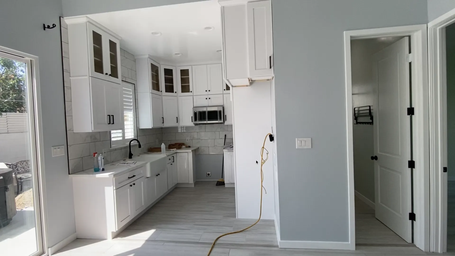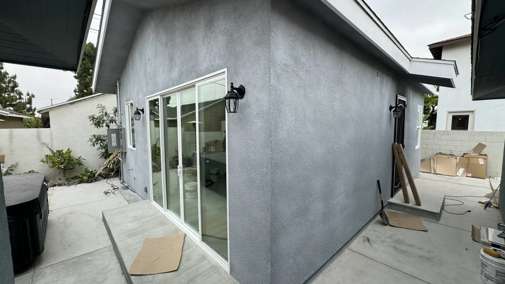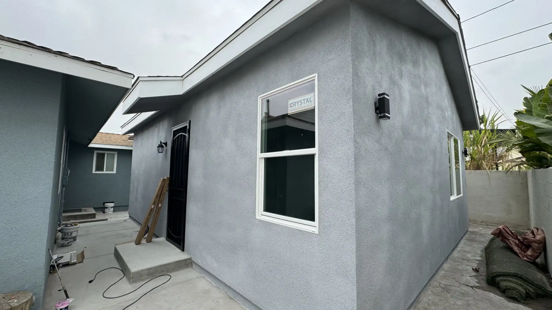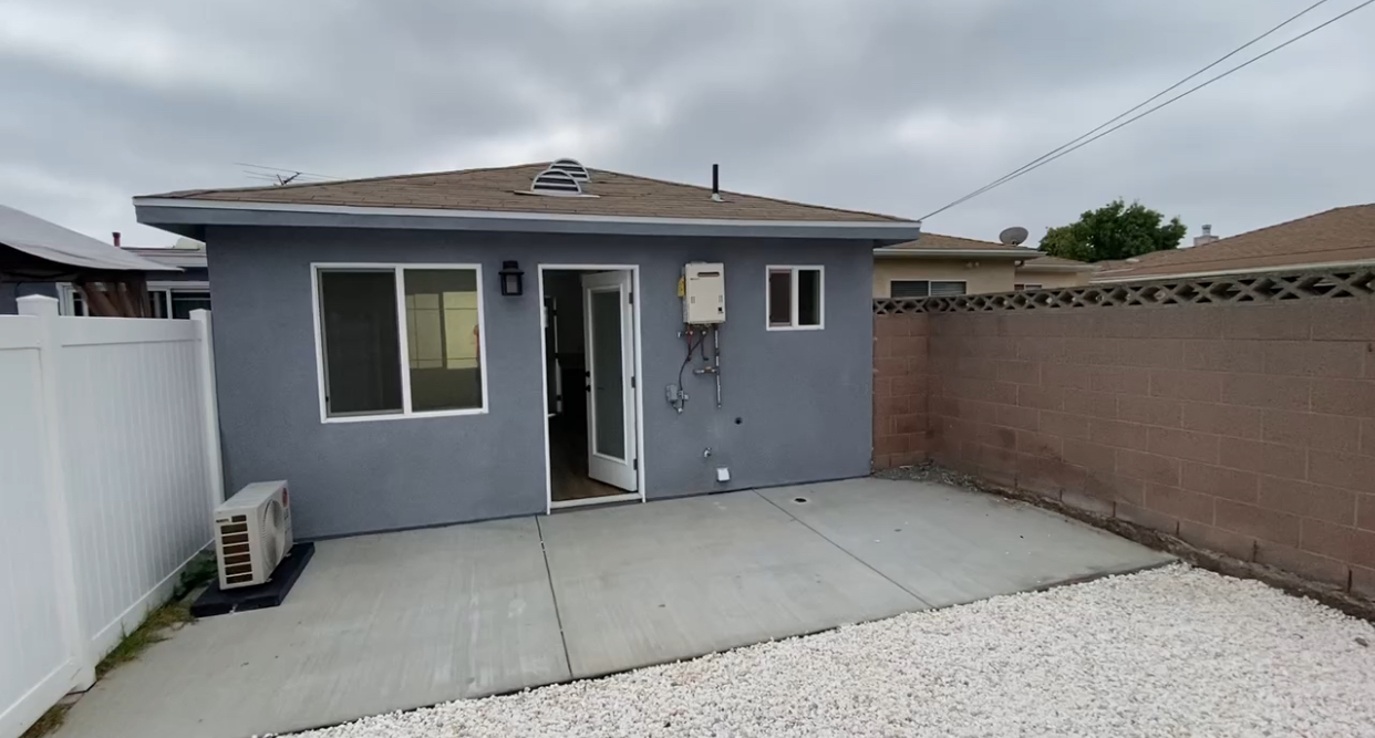 This project is approximately 600sf made in the city of Hawthorne. The client of this property had space behind and there he was made an ADU. This property has 14' high ceilings in the living room and office, in the kitchen and bedroom are 10' high, the door are 8' high and we install a panoramic door of 10'x8'. The kitchen has double cabinets at the top. The colors were chosen by the client as well as the color of the stucco. This project took us between 3 and 4 months to do it.