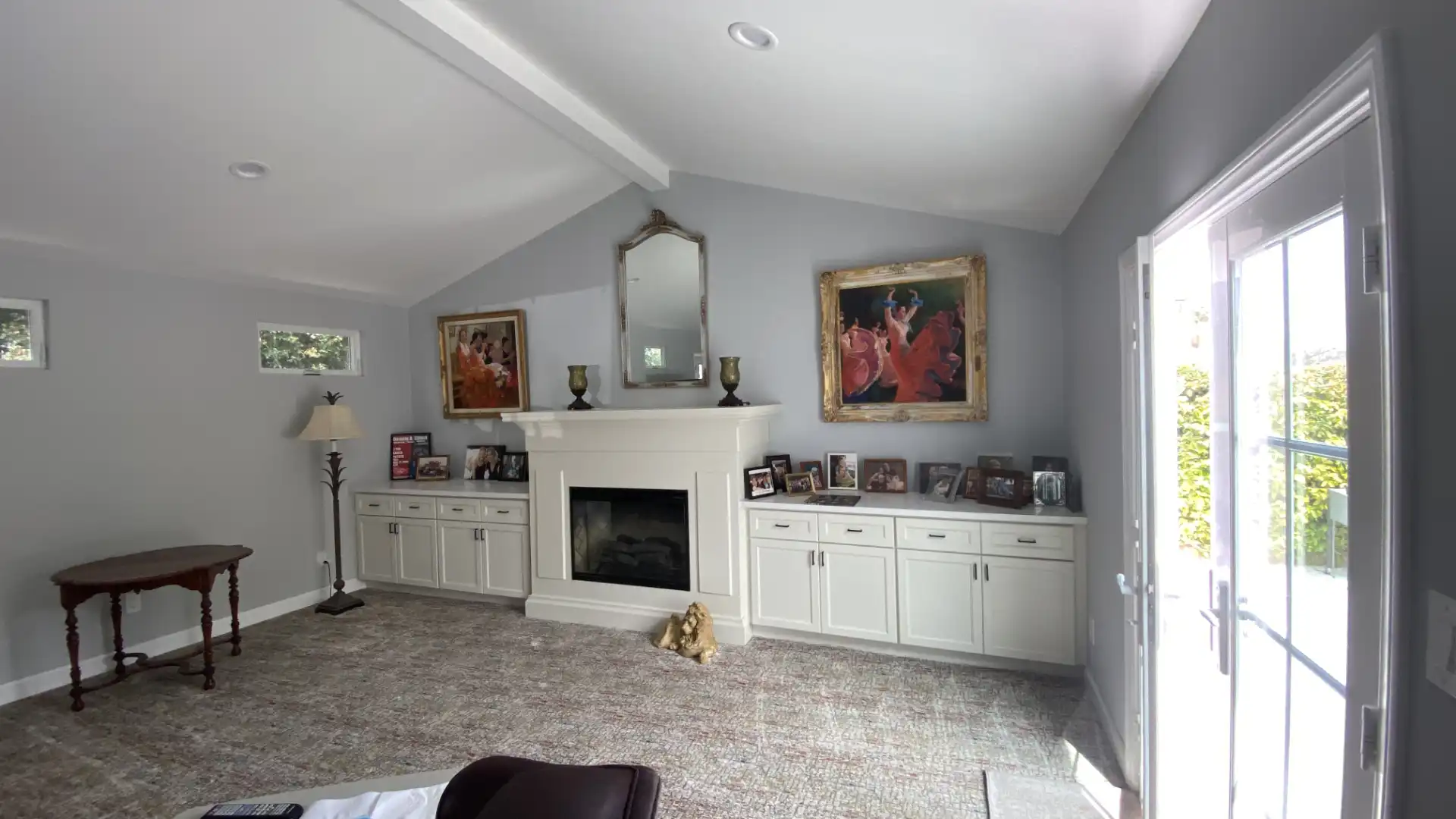 Project done in the city of Hawthorne where we add 498 sf to a room: this project involved foundation, fraiming, drywall, stucco, electricity, roof and painting. The project was done with plans and permits and took 3 to 4 months. This addition is a very spacious room where we also installed a fireplace and side cabinets. The ceilings are 16' high.